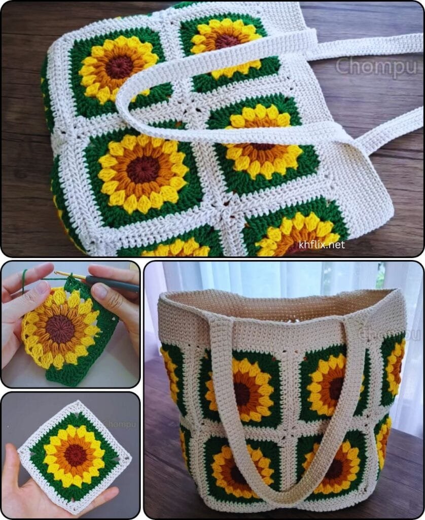 If you’re looking to crochet a granny square sunflower bag, you’re in the right place. This cheerful and charming project