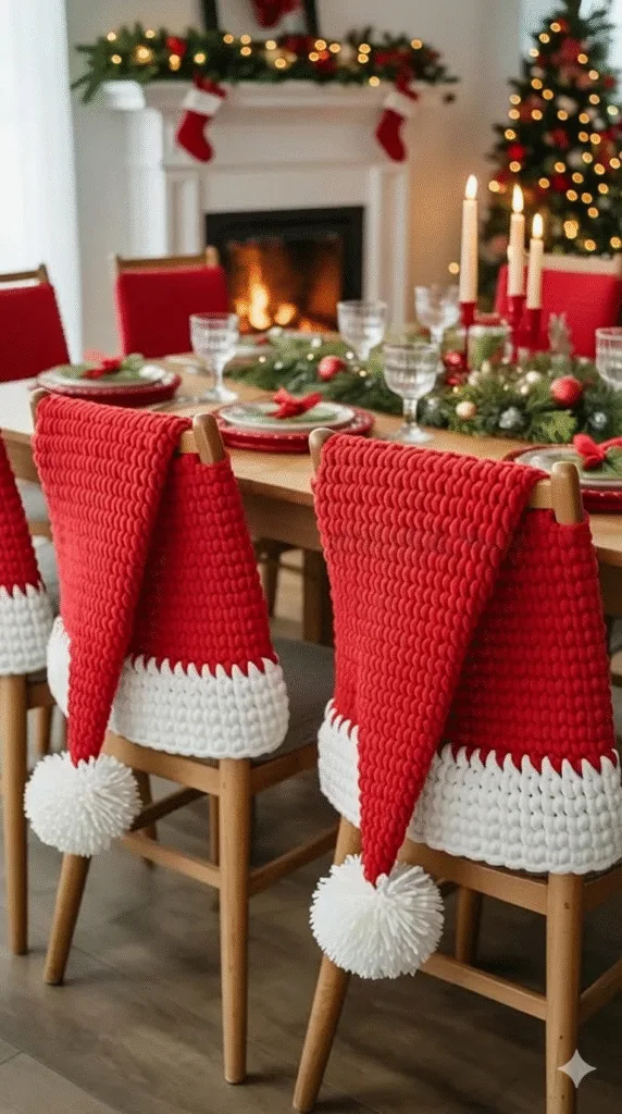 The Crochet Santa Hat Chair Cover Pattern is a festive and creative crochet project that transforms ordinary chairs into cheerful