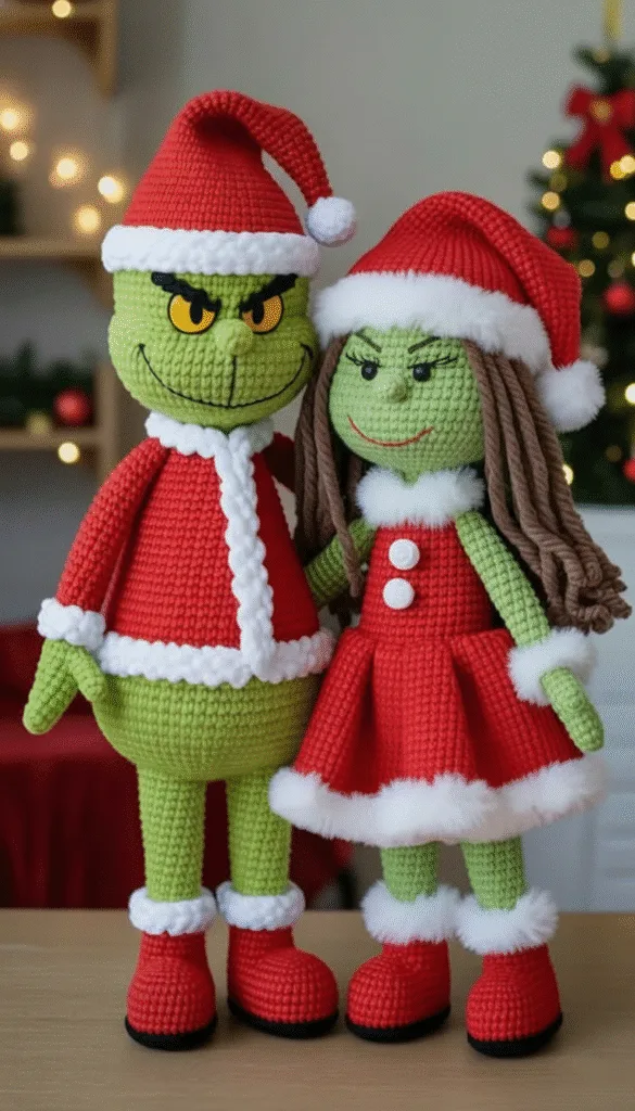 The Crochet Grinch Couple Pattern is a delightful and expressive crochet project that brings together creativity, storytelling, and seasonal charm