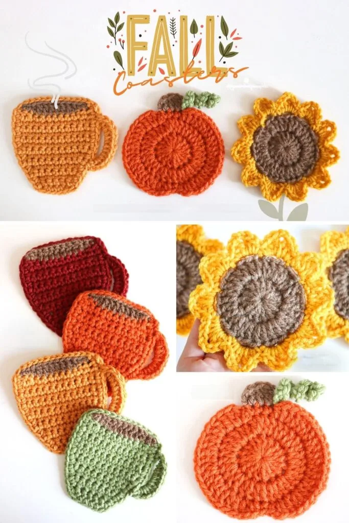 Crochet Coasters for Fall: Sunflower, Pumpkin, and Coffee Cup Patterns