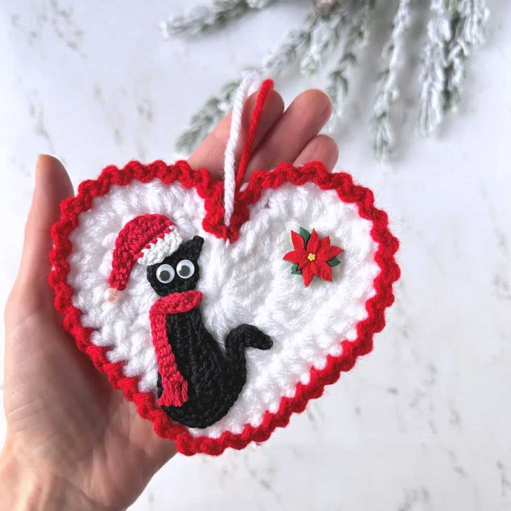 The Crochet Christmas Black Cat Heart Ornament Pattern is a unique and charming crochet project that combines festive spirit with