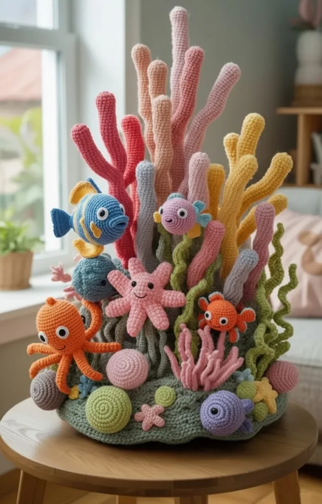 The Crochet Coral Reef Pattern is a captivating and artistic crochet project inspired by the beauty, diversity, and organic shapes