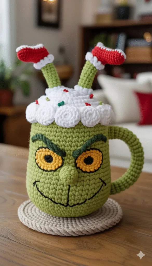 The Crochet Grinch Mug Pattern is a playful and festive crochet project that brings personality, humor, and holiday spirit into