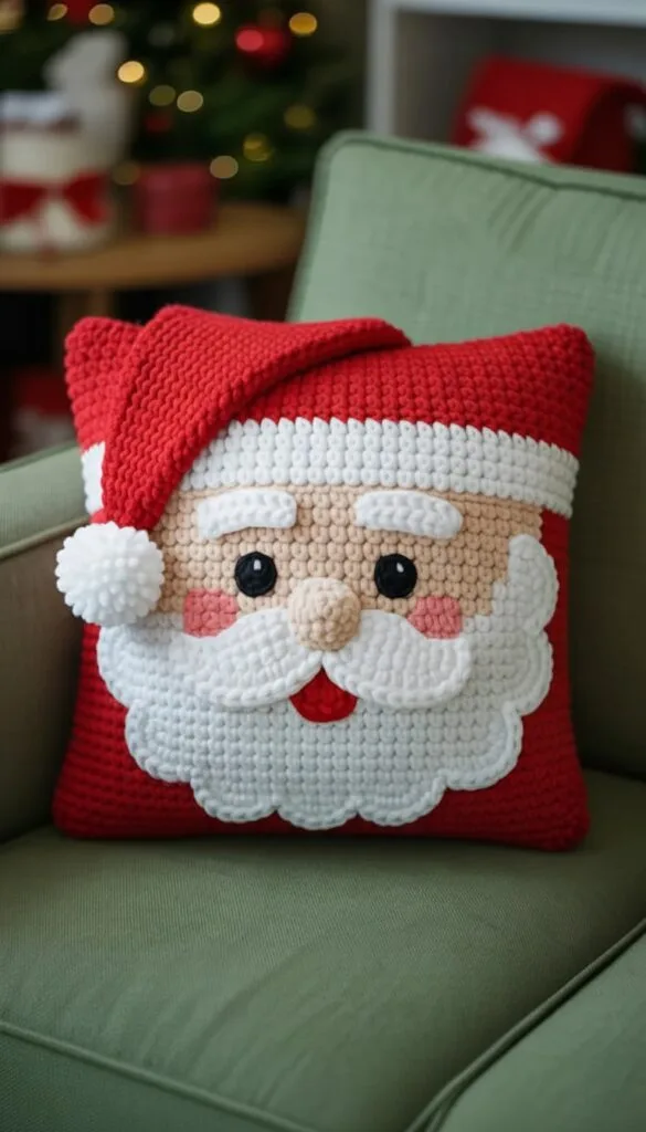 CIf you are looking for a festive and creative project to brighten up your holiday decorations, this Crochet Santa Pillow