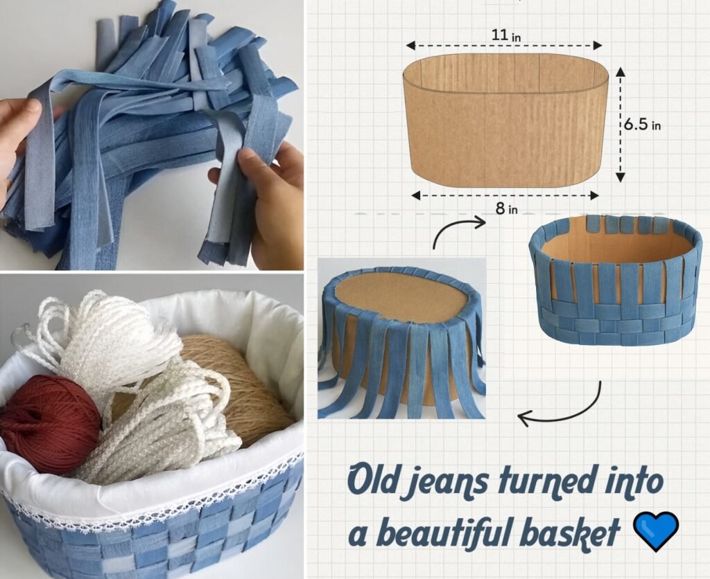 Transforming old jeans turned into a beautiful basket tutorial is one of the most creative and sustainable sewing projects you