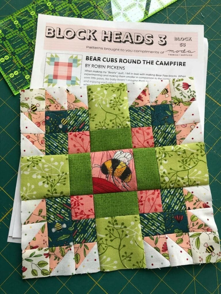 The Bear Cubs Round the Campfire Quilt Block Pattern is a warm, story-filled design that captures the heart of nature,