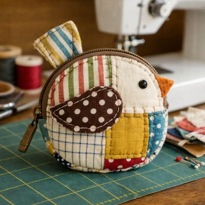 Bird Pouch Made with Scraps Pattern is a creative and sustainable sewing project that transforms leftover fabric pieces into a