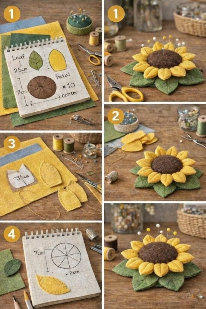 Sunflower Pincushion Fabric Pattern is a charming and practical sewing project that brings warmth, color, and functionality to your crafting