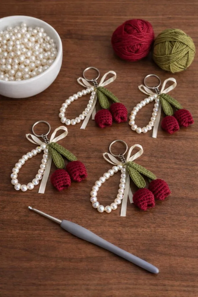 This is the kind of crochet project that teaches much more than simple stitch repetition. It helps you improve small-scale shaping, tight tension control, assembly, decorative balance, and functional finishing while allowing you to create something useful and adorable by hand. With the right yarn, sturdy hardware, and a well-chosen hook, your tulip keychain can become a cute handmade accessory full of softness, color, and everyday charm.