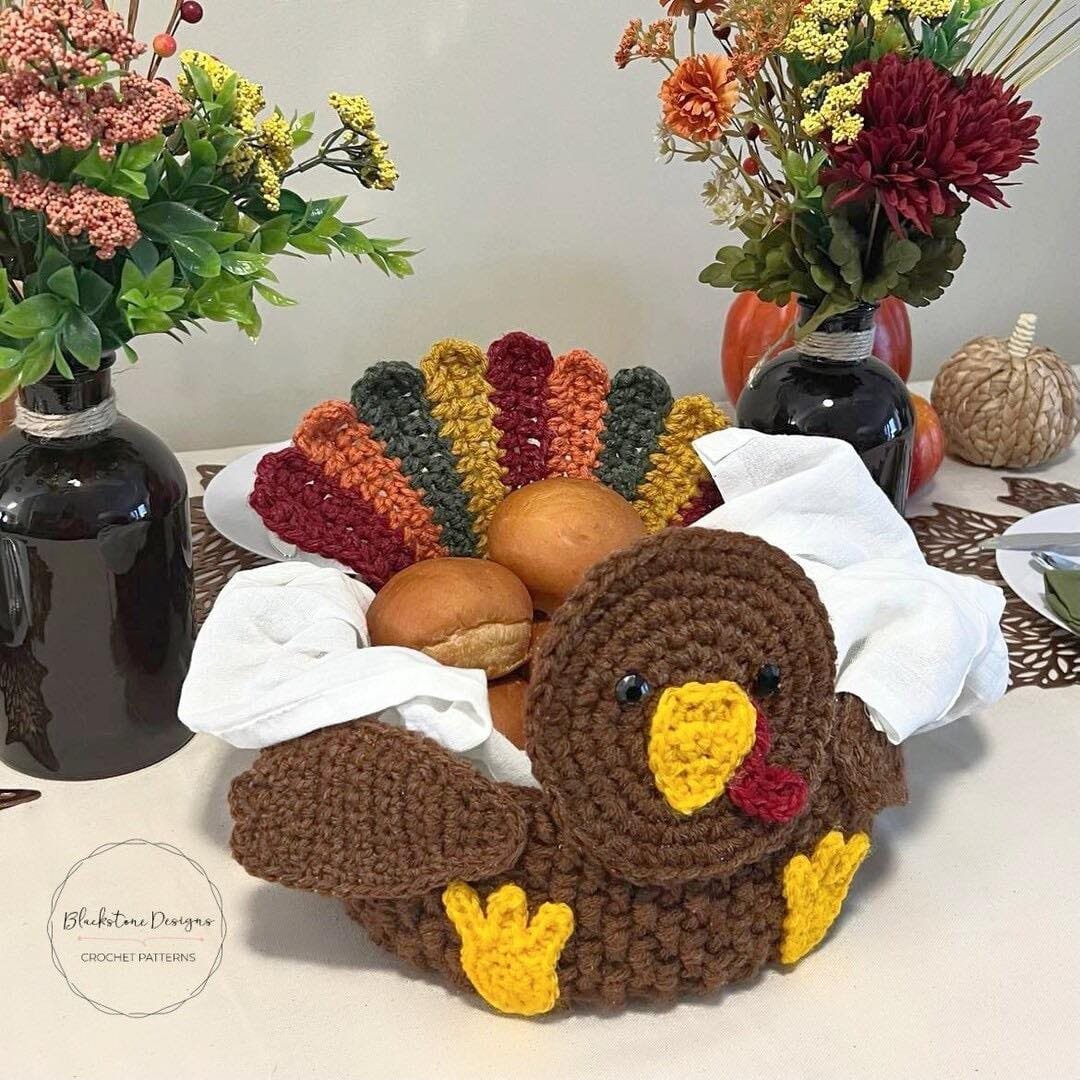 The Turkey Crochet Bread Bowl Pattern is not just decorative — it’s practical too! Use it as a bread or roll holder during family dinners, holiday feasts, or brunches. It’s a fun way to keep baked goods warm while adding a seasonal touch to your dining table.