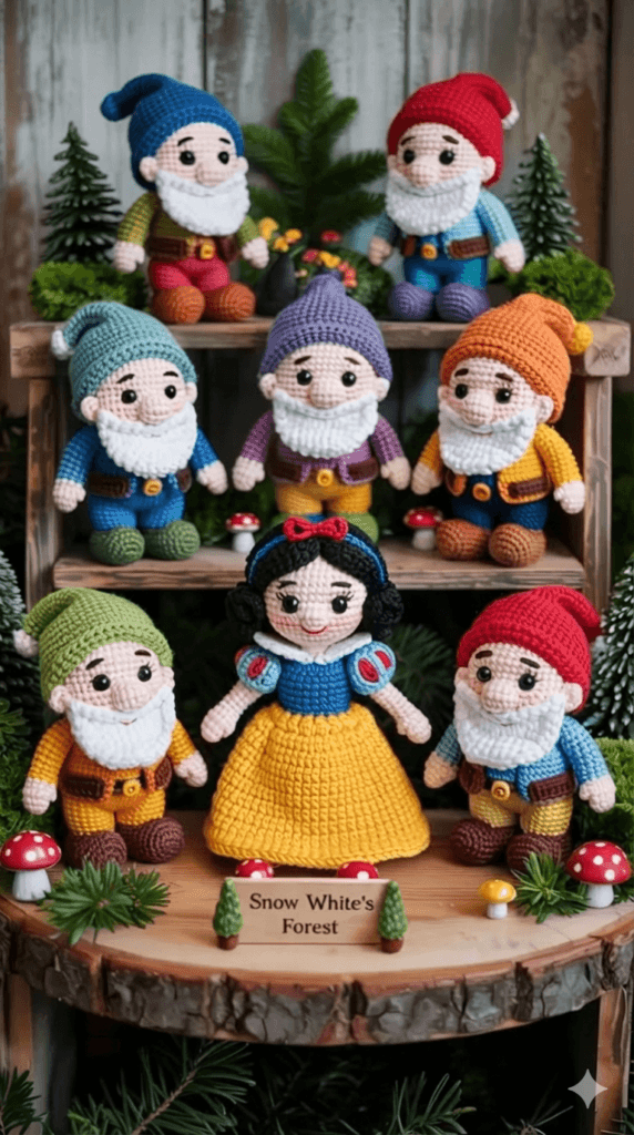 Crochet Snow White and the Seven Dwarfs Tutorial is a creative and enchanting crochet concept that allows crafters to bring