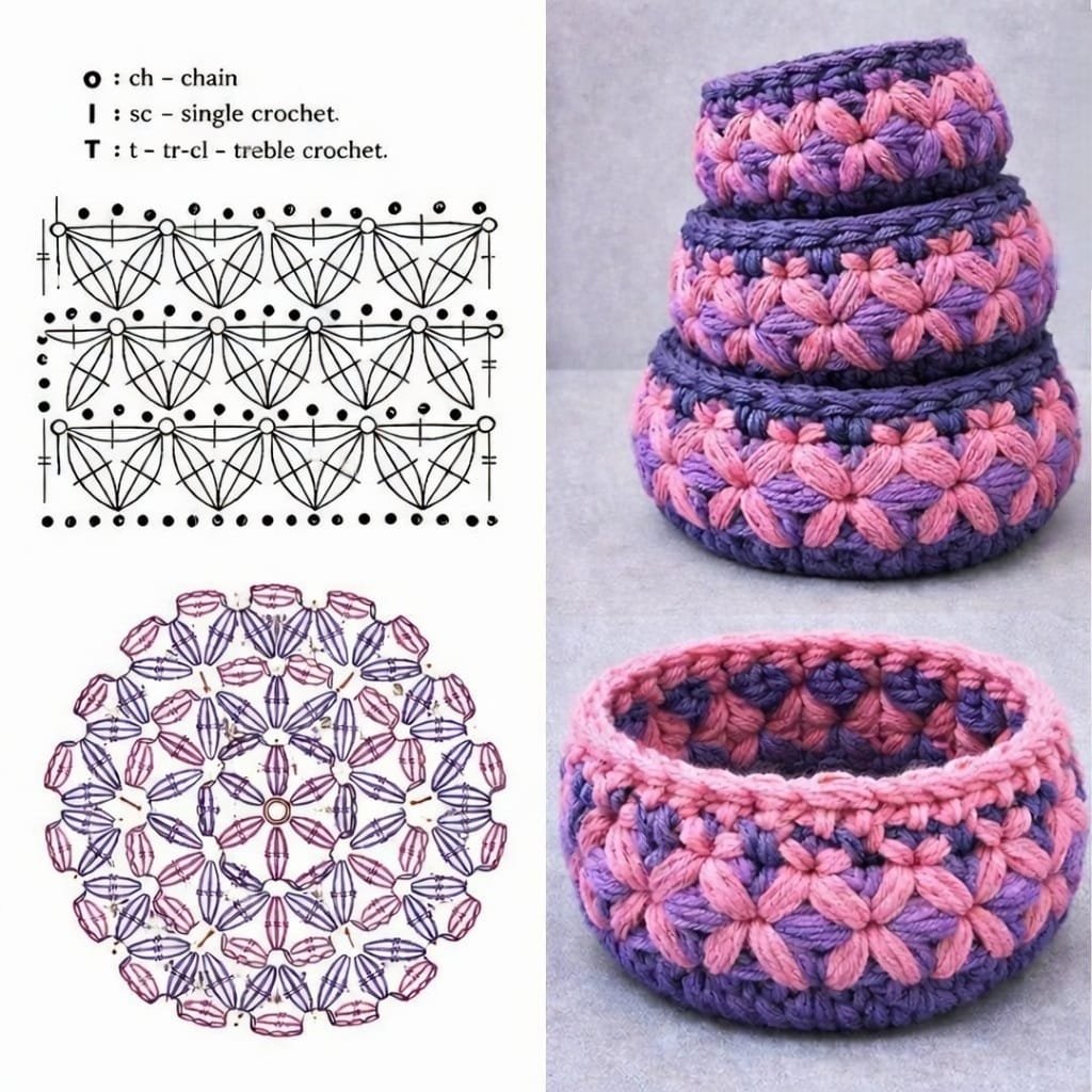 The Crochet Basket Point Star Pattern is a visually striking and highly textured crochet design that beautifully combines structural stitches