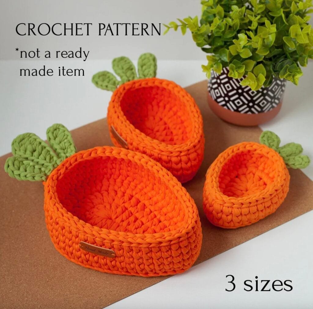 The Crochet Carrot Basket Pattern is a creative and festive crochet project that blends playful design with practical storage. The
