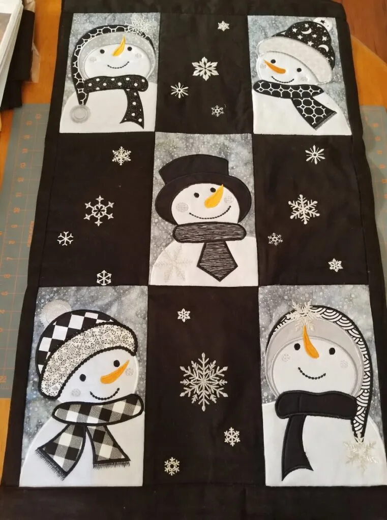 If your project includes appliqué, take extra care with curves and edges so the snowman shapes remain smooth and recognizable.