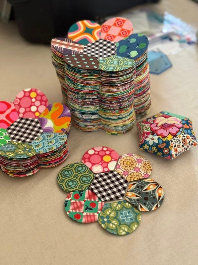 If you are using the English Paper Piecing method, paper hexagon inserts help maintain consistent shape during stitching. For machine sewing, accurate seam allowances are equally important.