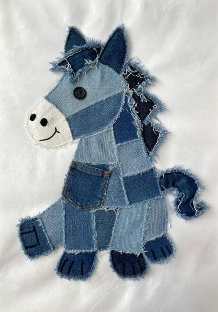 Creating multiple horses in different sizes can turn the Patchwork Horse Jeans Pattern into a themed collection.